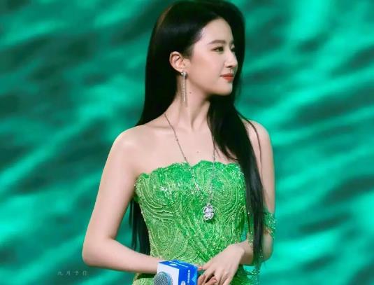 先说说她穿的那条绿色长裙,配上黑长直发型,简直是美翻了。这条裙子从颜色到款式都特别时尚。抹胸设计完美地展现了她的天鹅颈和肩颈线条,要是身材适中,锁骨也能美美地露出来。不过啊,这种设计对身材还是有点要求的,毕竟太胖了既不好看也不健康。女明星们为了保持身材,经常健身、节食,有的都瘦成皮包骨了。