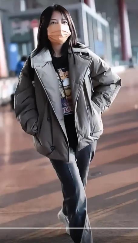 再说说那件羽绒服,那简直是搭配的神来之笔。很多人觉得羽绒服都是臃肿的,但赵薇这件却完全不同。它款式简单大方,线条流畅,没有太多花哨的装饰,但又不失时尚感。